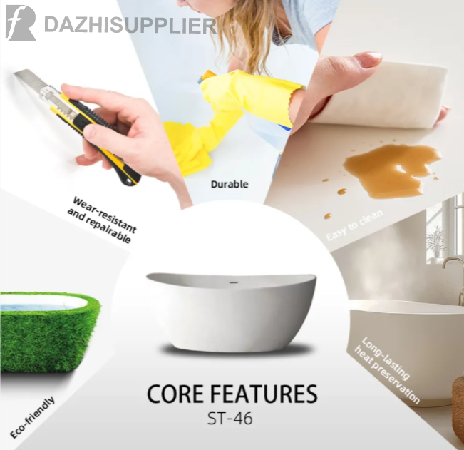1700x780x640mm Freestanding Artificial Stone Bathtub Indoor Outdoor Matte Finish Two-Person Modern Bedroom Bathroom.