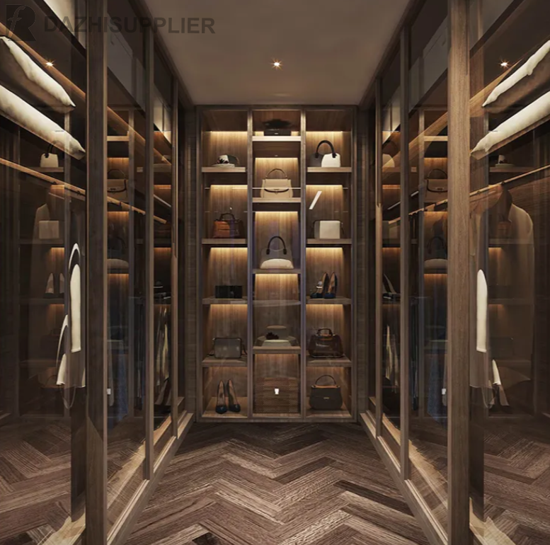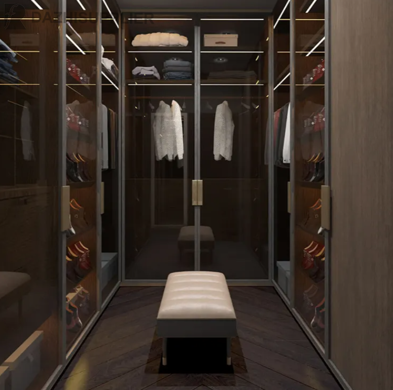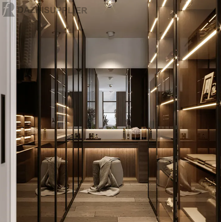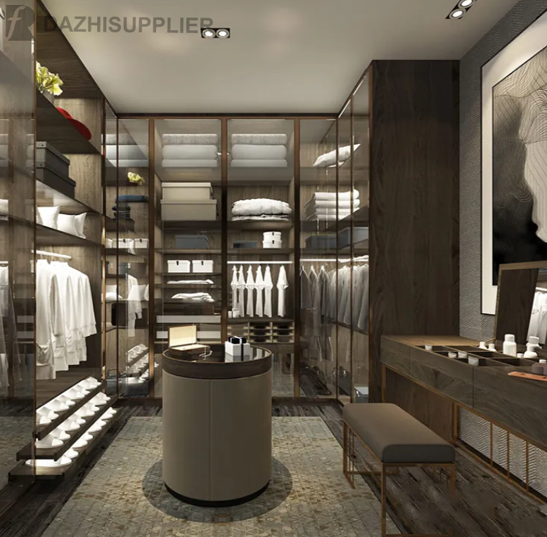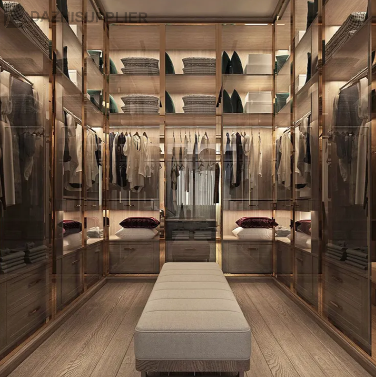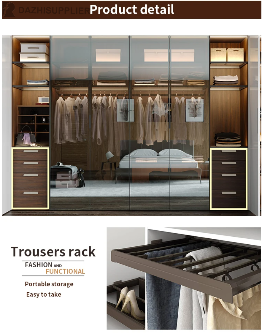 Customization Modern Portable Glass Door Wooden Bedroom Wardrobe Closet Walk in Closet Wardrobe.