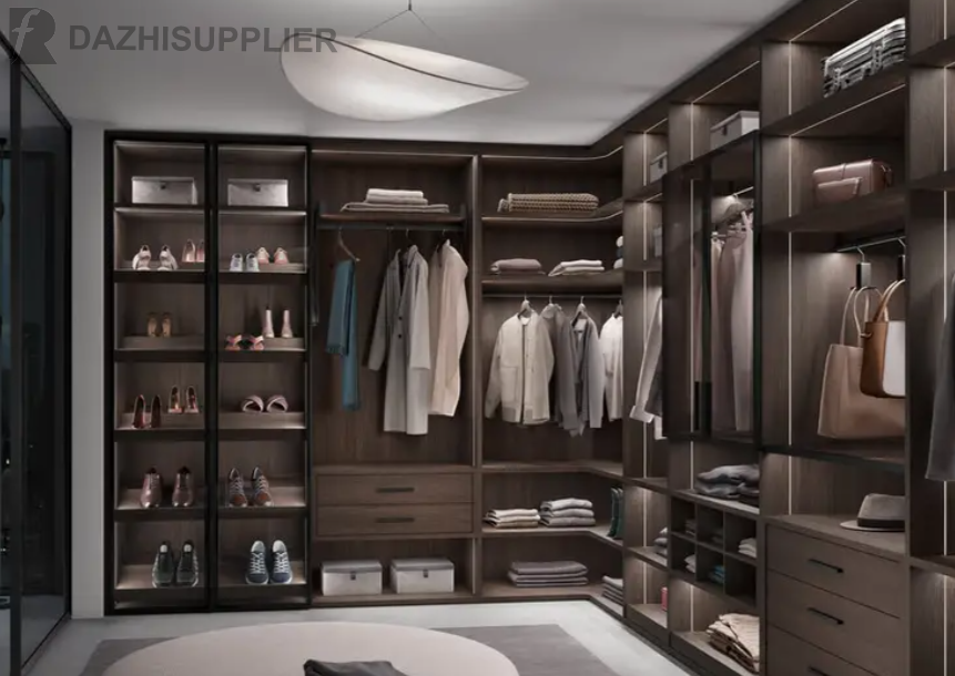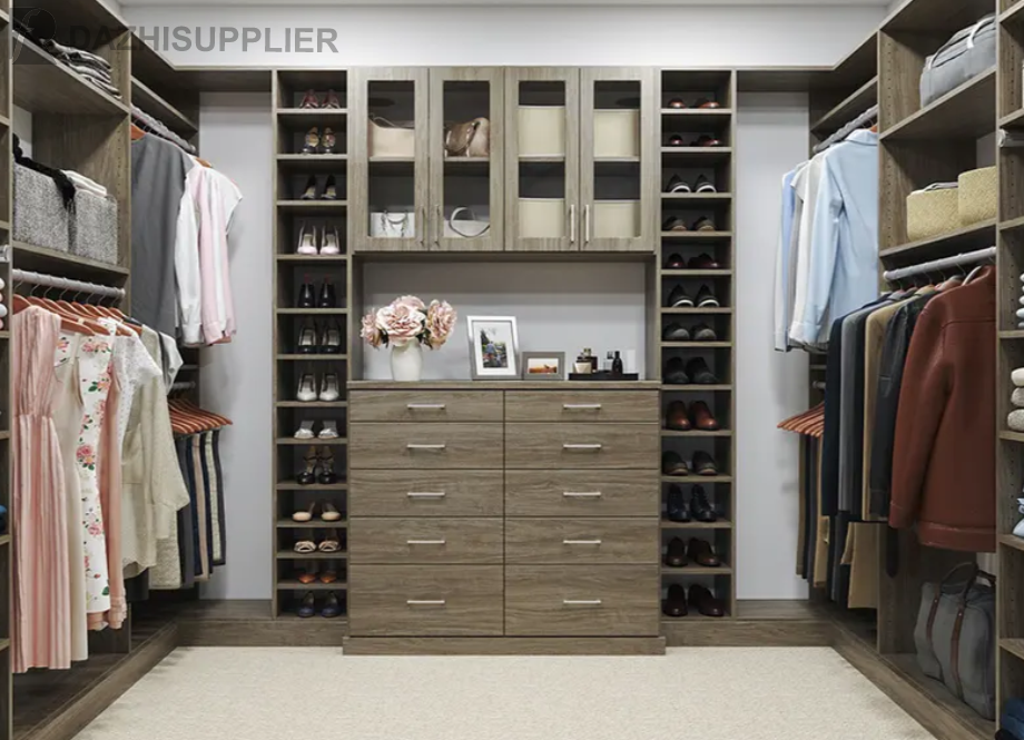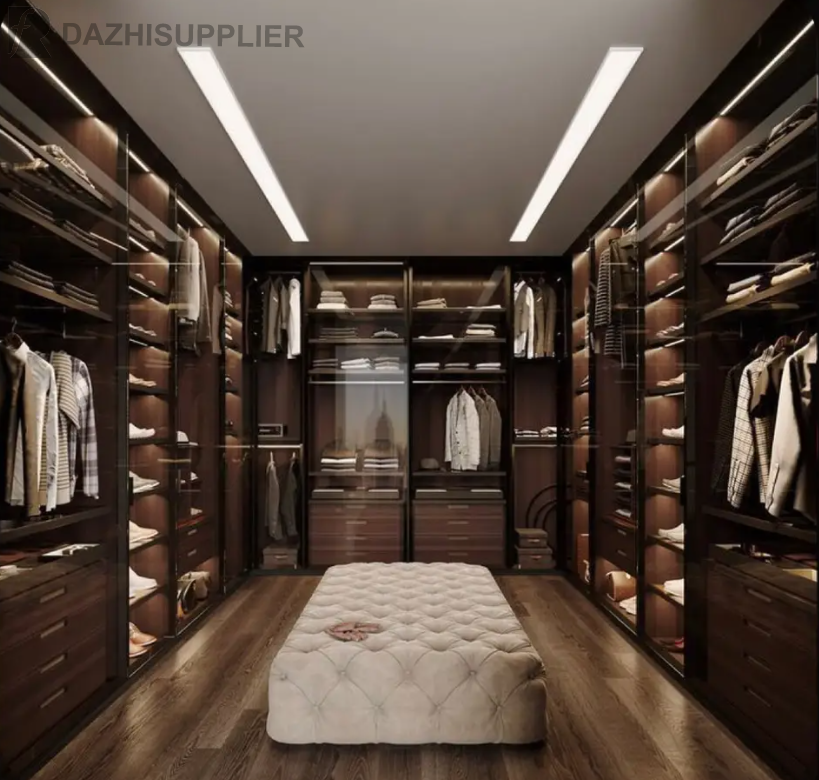 Custom Modern Walk-in Closet Wardrobe Systems Wood Bedroom Cupboards for Home Furniture for Villas.