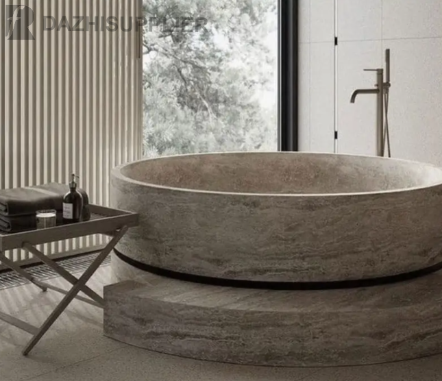 Vintage Silver Grey Free-Standing White Bathtubs for Villa and Apartment Outdoor Areas.