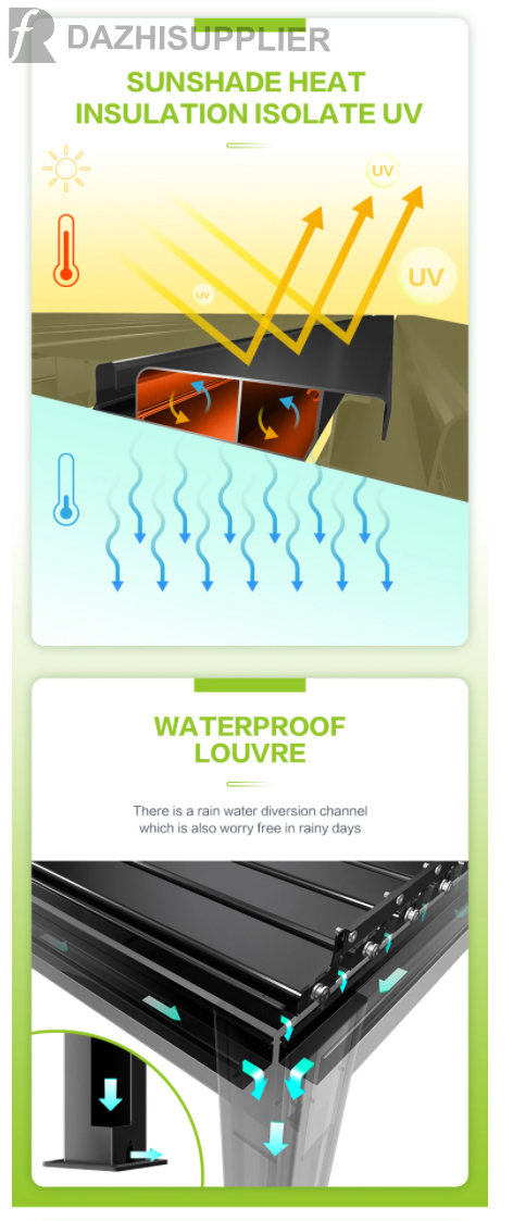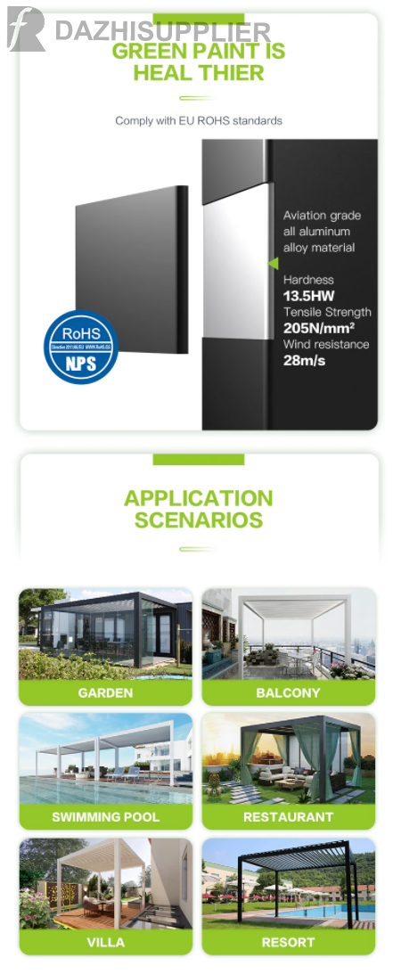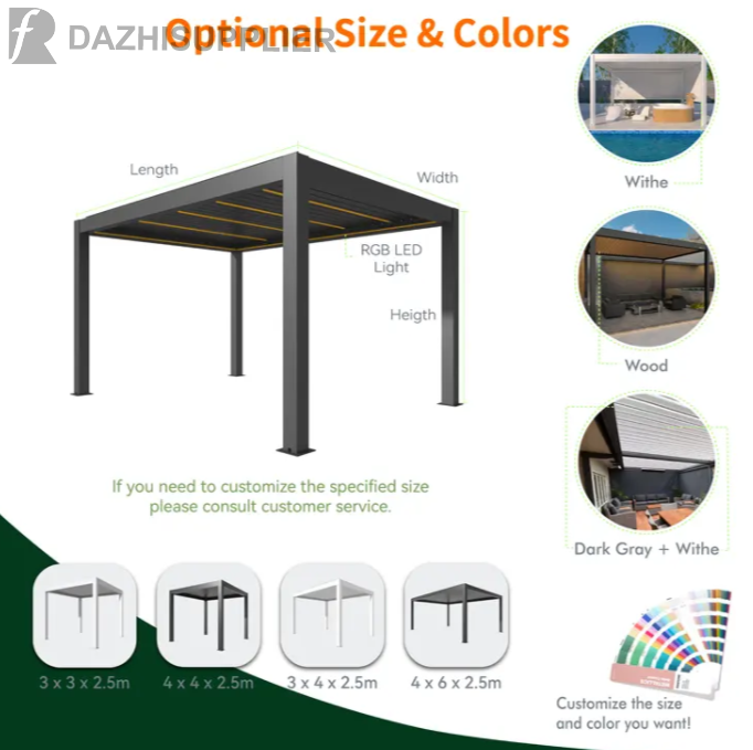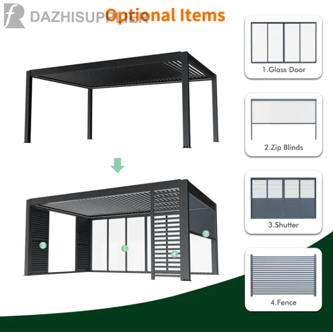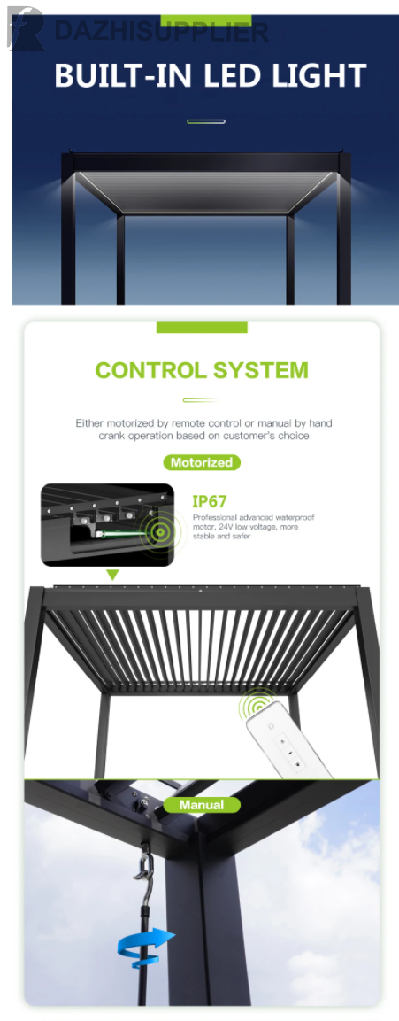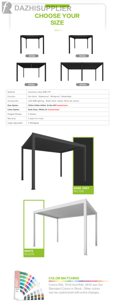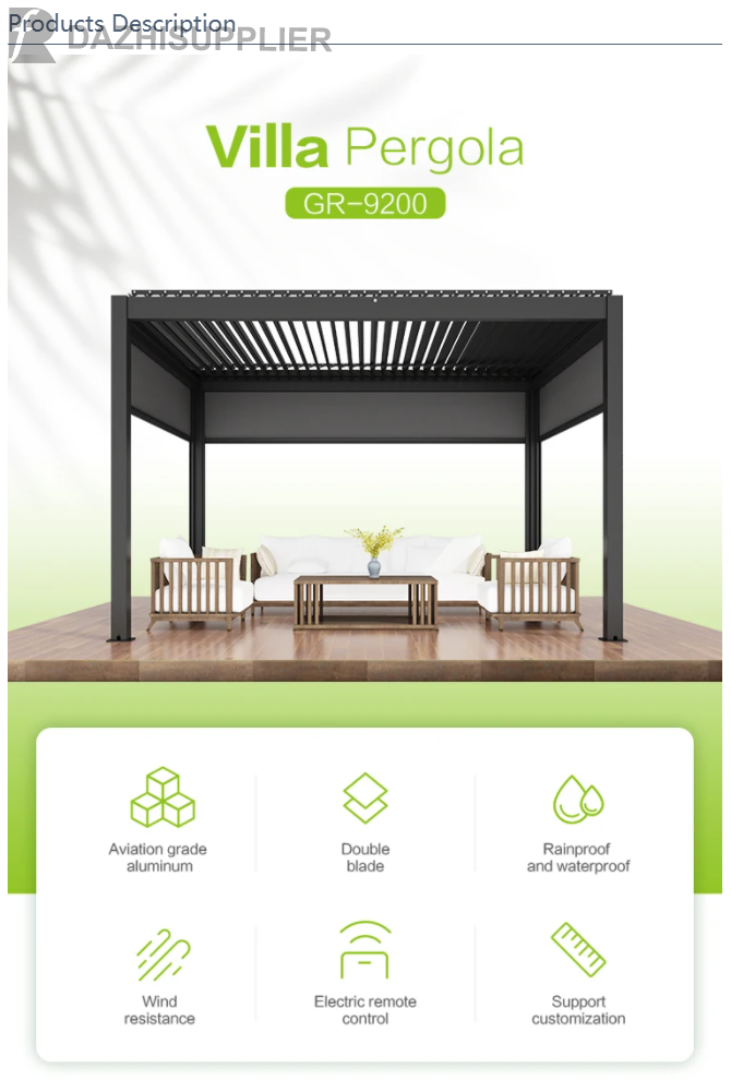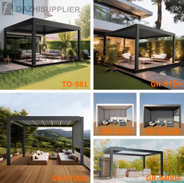 Luxury Modern Outdoor Pergola Aluminium Waterproof Louver Roof Metal Garden Pergola.
