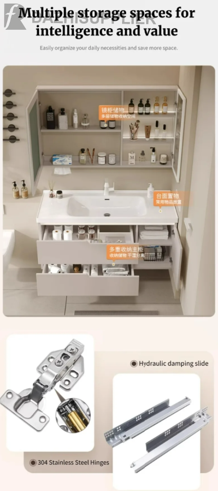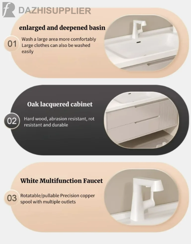 Luxury Modern Multi-Functional Storage Bathroom Vanity Set Wall Mount and Free Standing Ceramic Basin for Apartment Use.