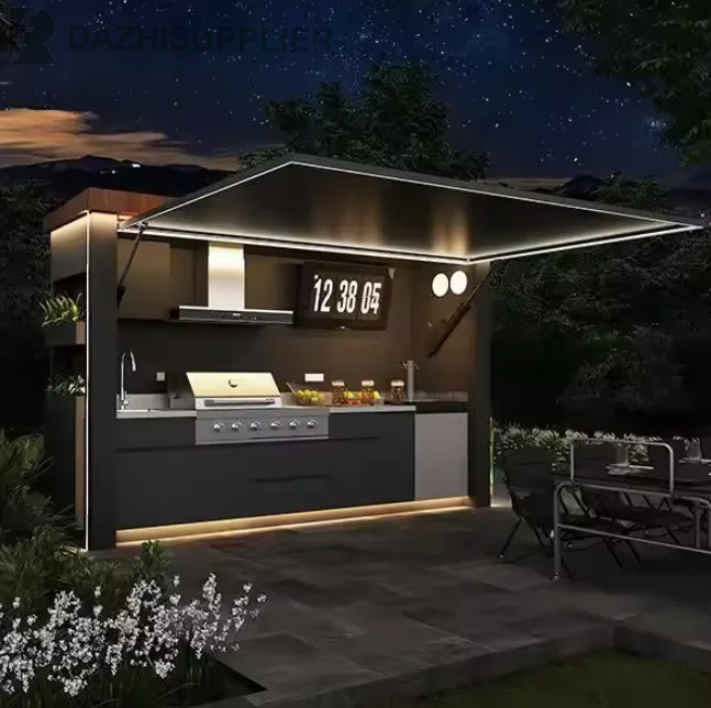 304 Stainless Steel Outdoor Kitchen Cabinet With Marble Top CE Certified Custom Factory Durable for Garden Party.